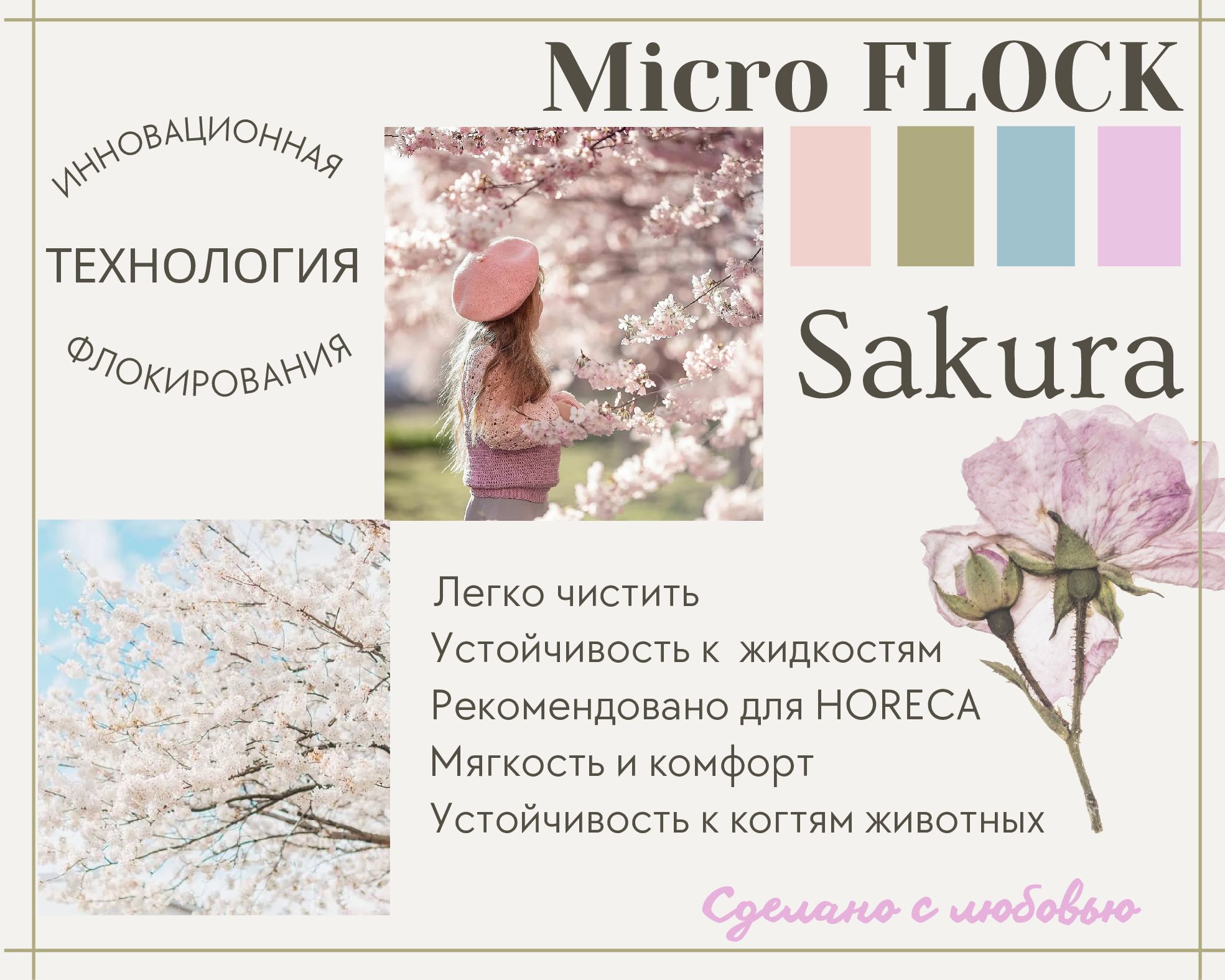 Как весной в парках Японии цветет сакура, покрывая ветки плотным пушистым ковром соцветий, так и наша новая коллекция микрофлока буквально повторяет эти ощущения легкого, но плотного облака кипящих цветов. Выполненный по особой технологии орнамент только усиливает сходство, ведь издалека принт напоминает россыпь мелких лепестков, летящих по воздуху. Неудивительно, что имя коллекции появилось сразу – Сакура, мягкая, легкая и необыкновенно красивая ткань.